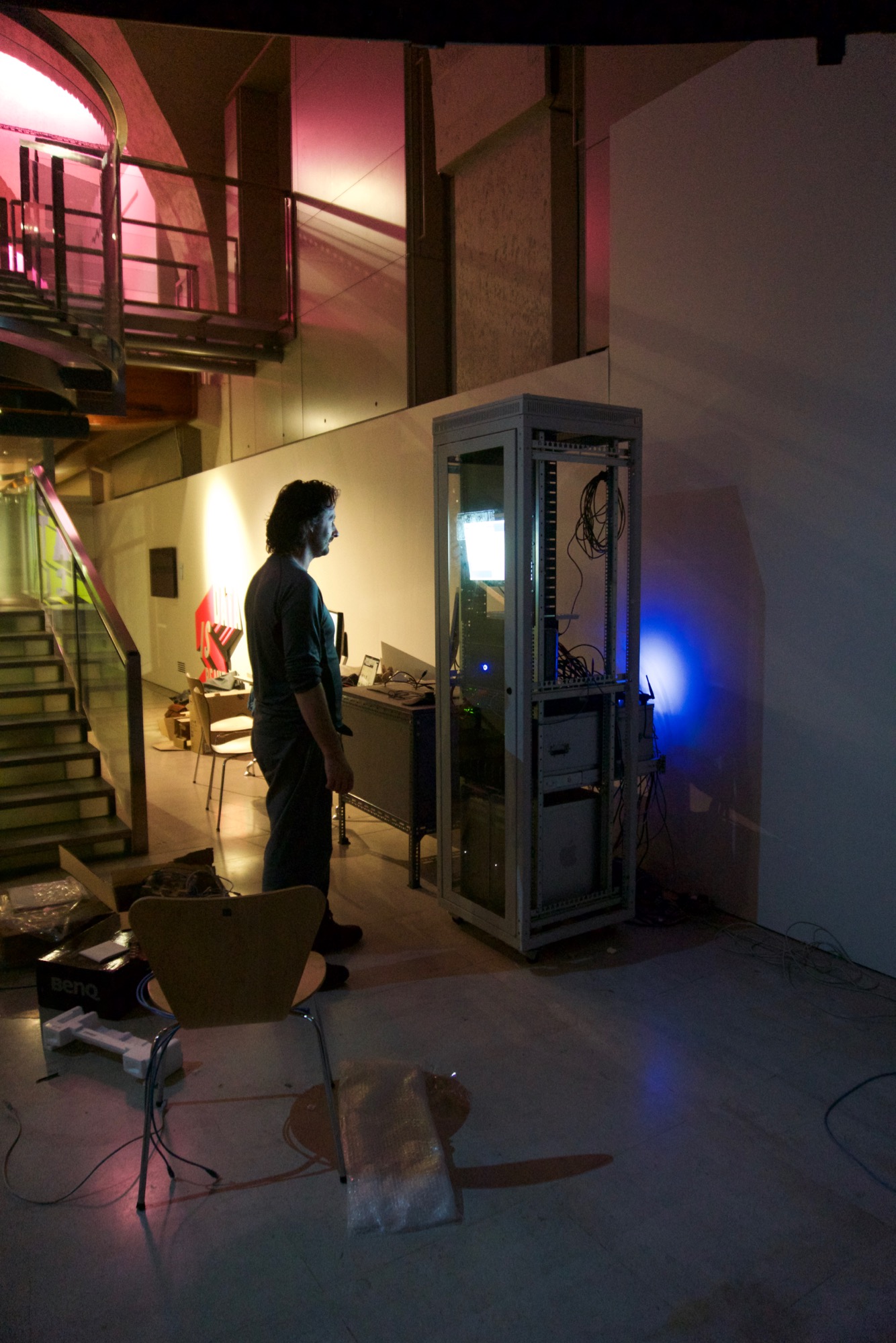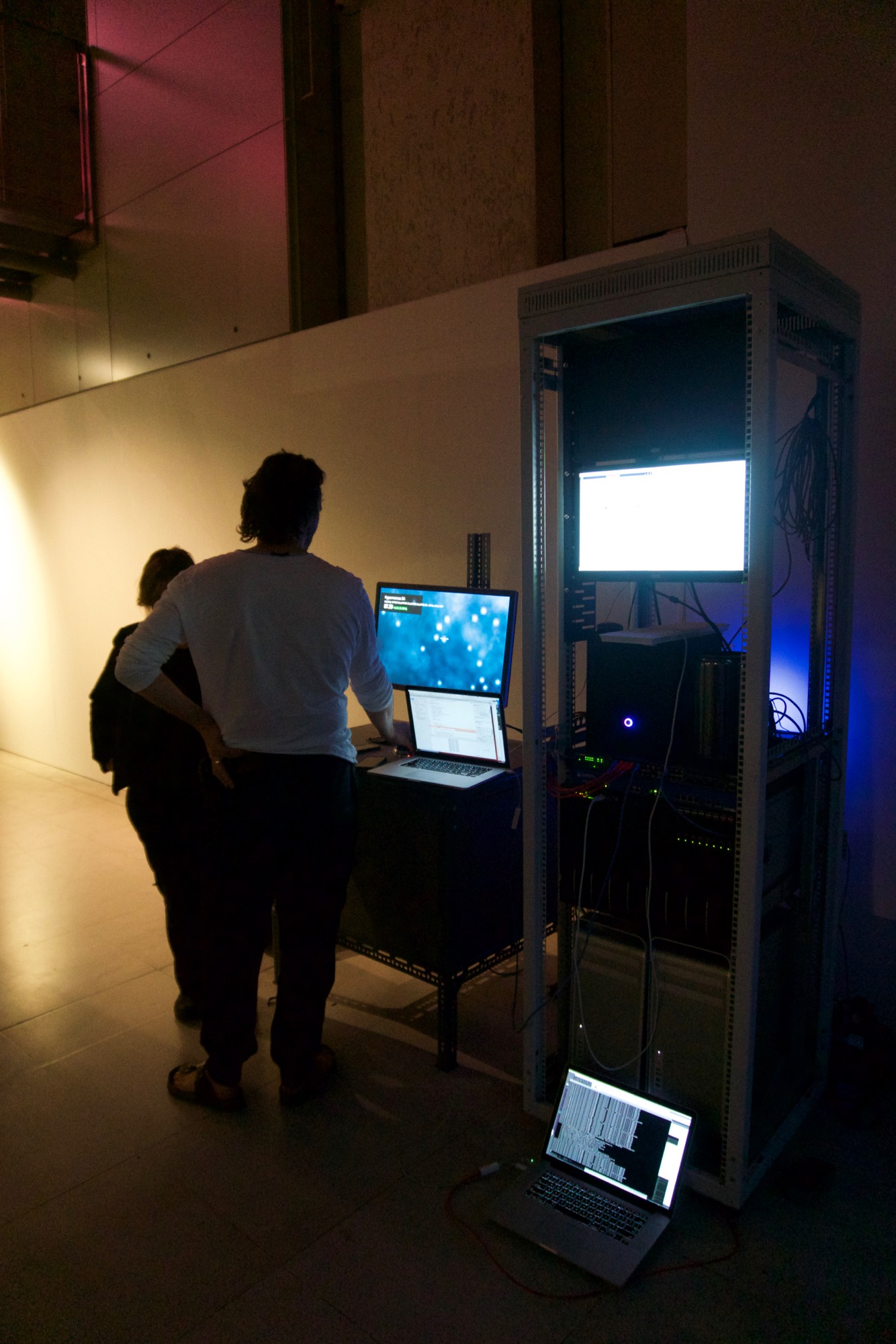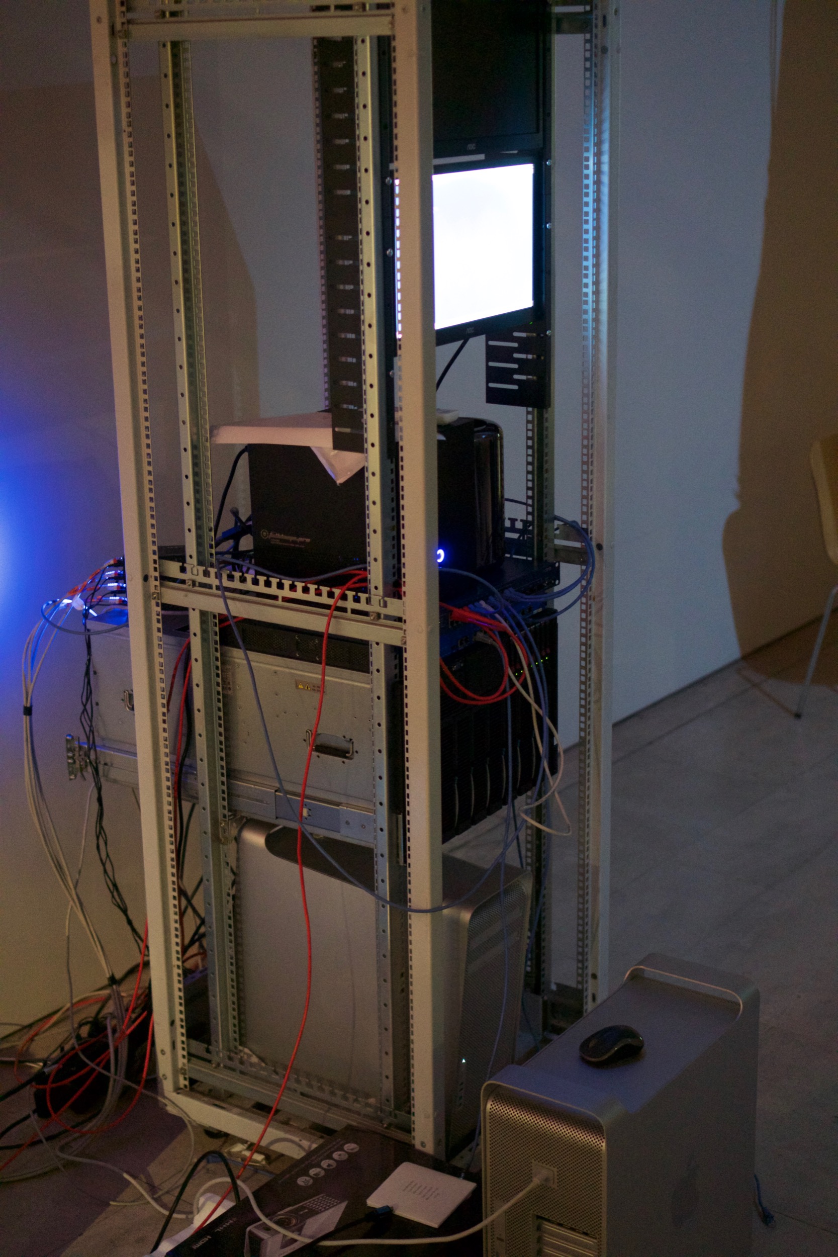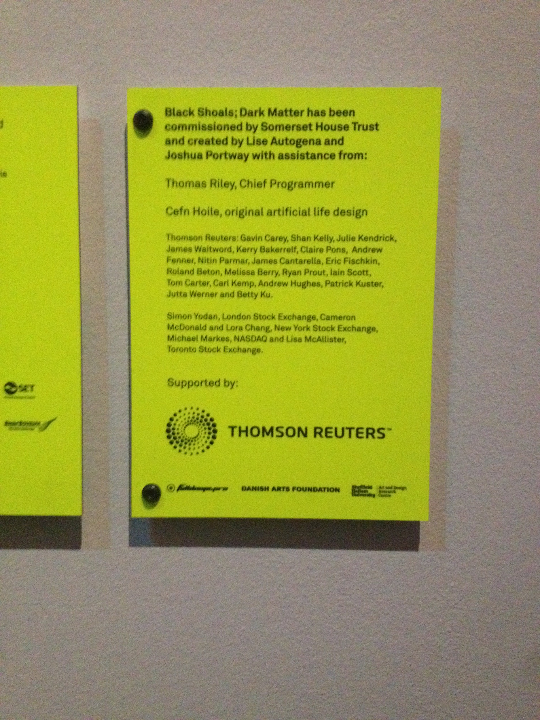 This installation was exhibited as the main installation at the Nikolaj contemporary art gallery, Copenhagen in Spring 2004 and again as part of the Big Bang Data exhibition at Somerset House, London in 2015 and again at the Art Science Museum in Singapore in 2016.