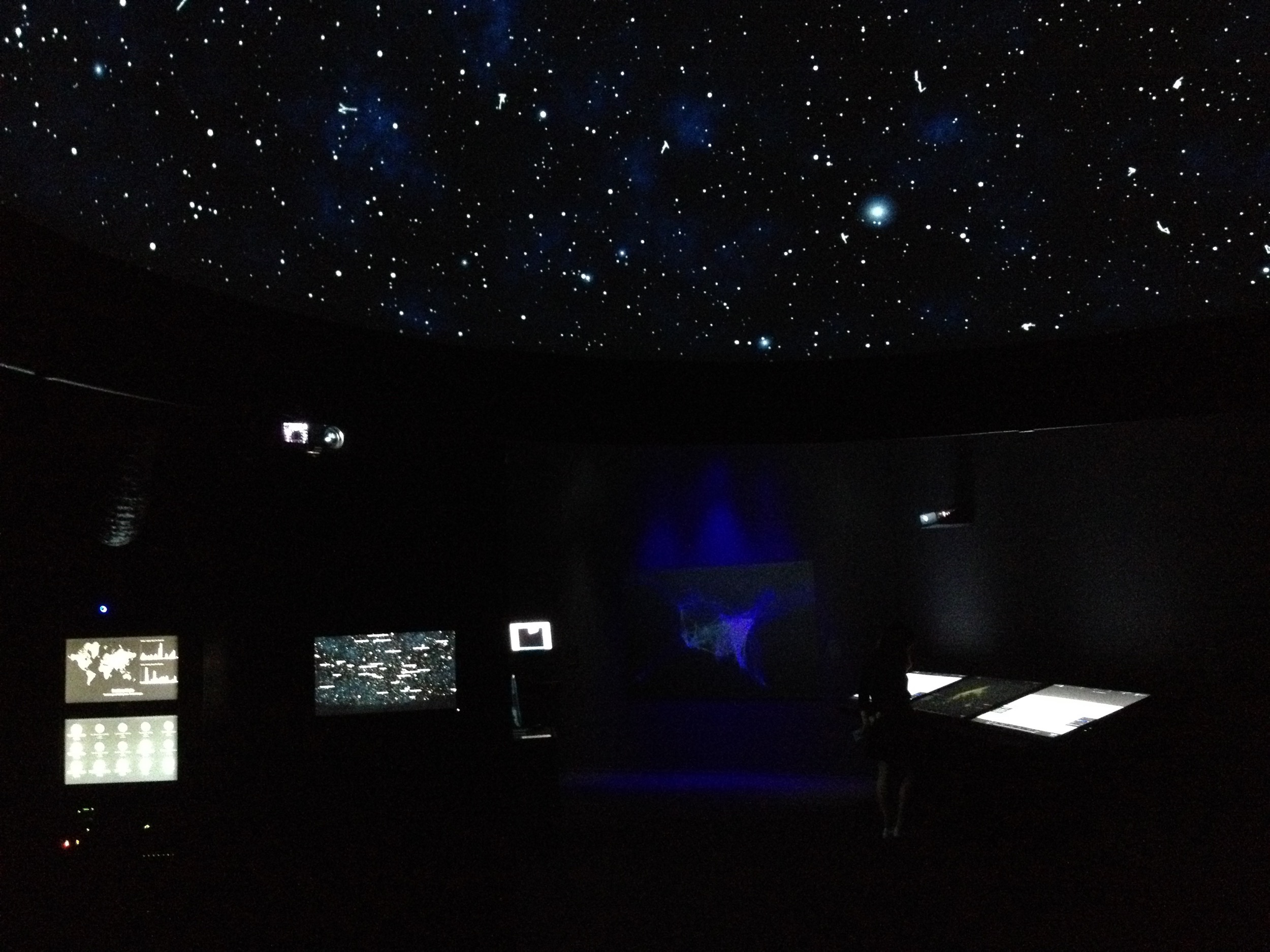 Thousands of companies from across the world are represented as stars that flicker and glow in as shares are traded on various stock exchanges. The brightness and duration of the glow indicates the volume of the trading activity and the stars slowly drift in response to the complex movements of capital in the markets. My role on this project was that of Chief Programmer, responsible for design and implementation of most of the software portion of the project.