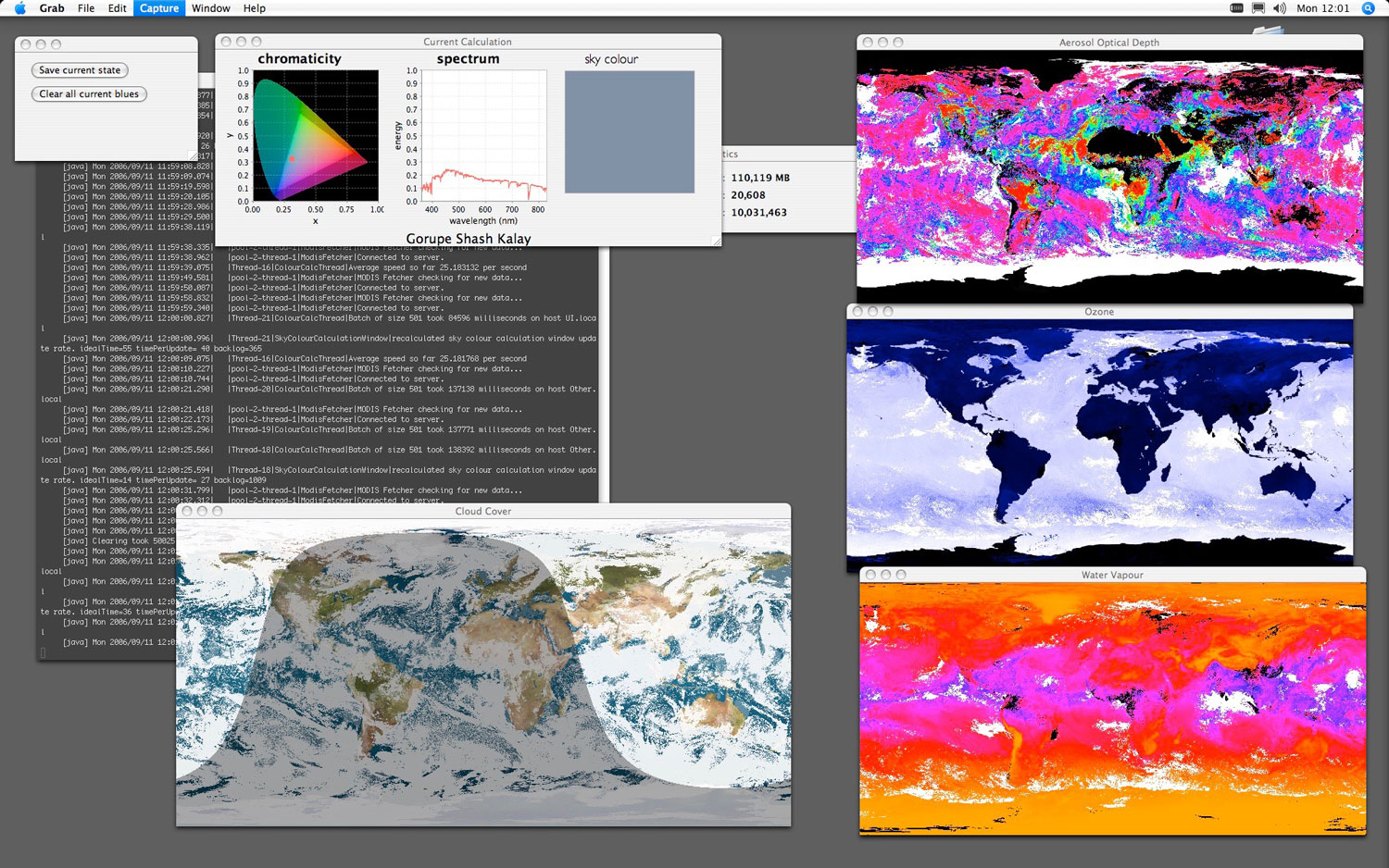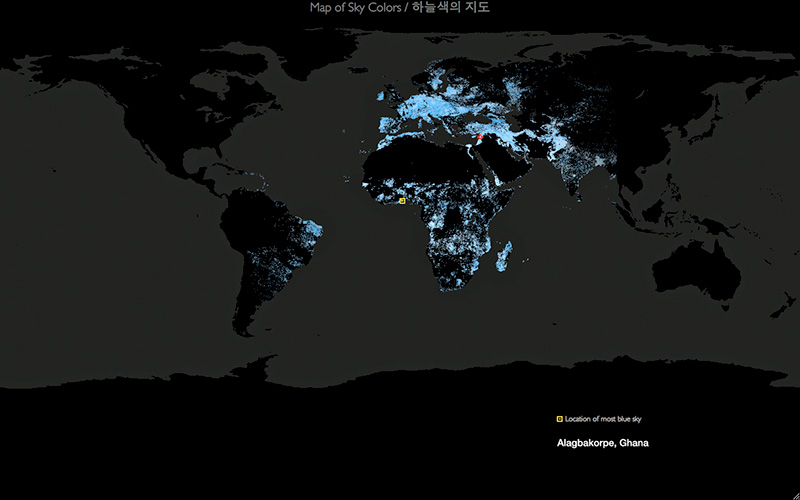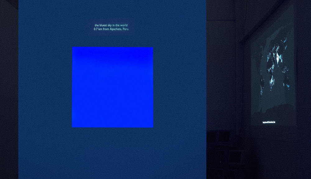 Most Blue Skies is a computer generated installation by Joshua Portway and Lise Autogena that attempts to find "the bluest skies" in the world. I worked as Chief Programmer on this project.